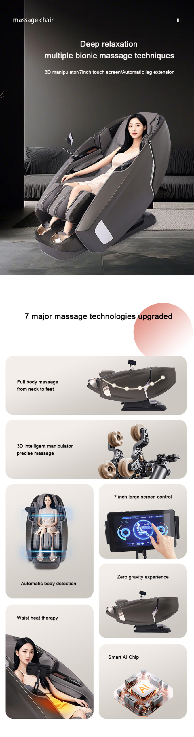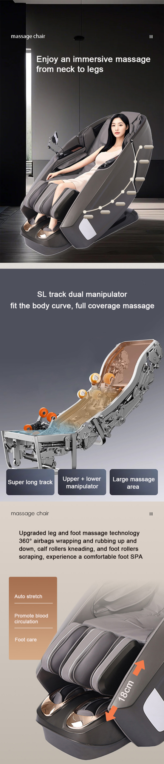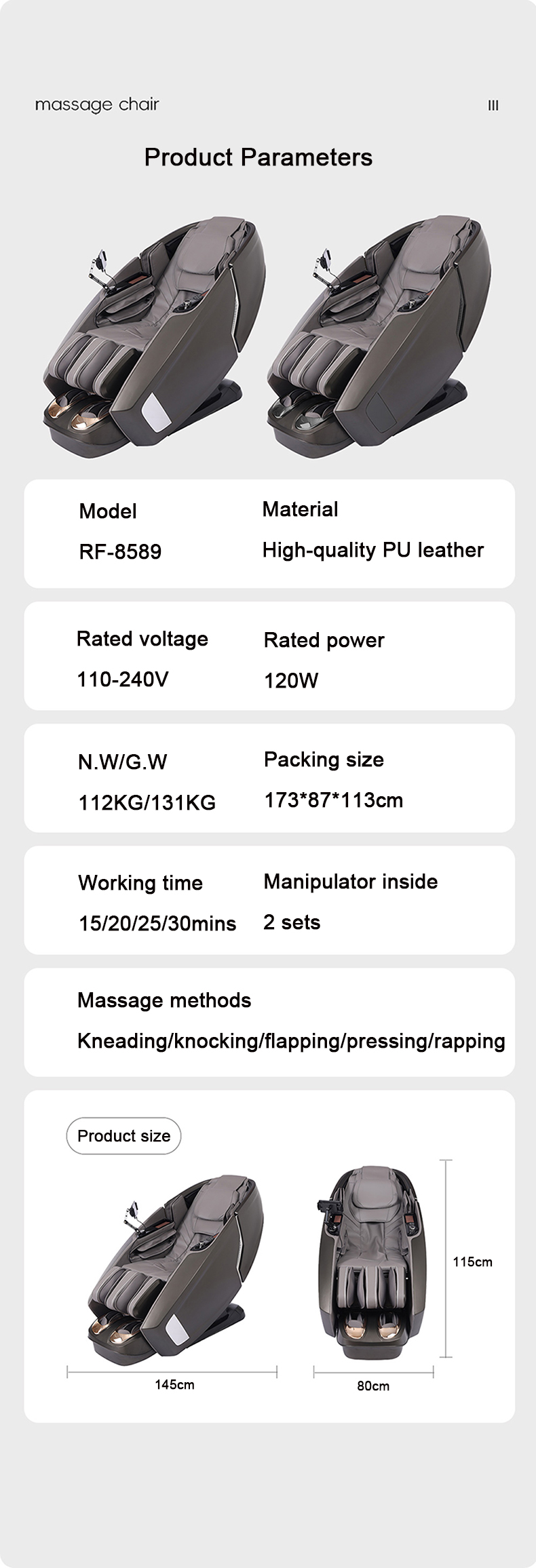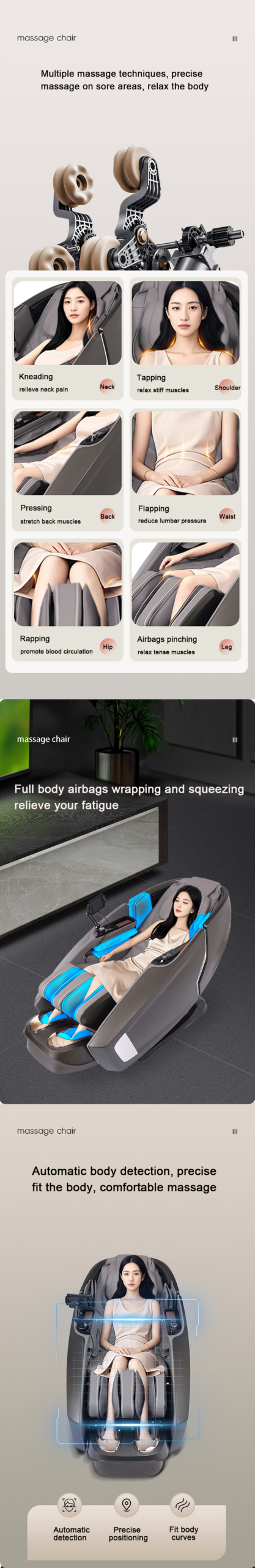 This is our low-priced and cost-effective model, mainly for quantity order. It’s with an elegant appearance, Armrest with ABS and led light decoration, full body kneading, heating and airbags squeezing. It is your best choice for leisure and relaxation.